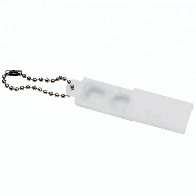 Förvaringsbox för två hörbatterier, försedd med nyckelringskedja
